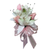 Un boutonnière delicado y sofisticado, diseñado con flores frescas en tonos suaves, perfecto para complementar el atuendo en eventos formales.