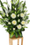 Este impresionante arreglo floral combina lirios, rosas y flores blancas con un exuberante follaje verde para transmitir pureza, serenidad y elegancia. Su diseño alto y armonioso lo convierte en una pieza central imponente, ideal para expresar sentimientos de gratitud o acompañar momentos solemnes.